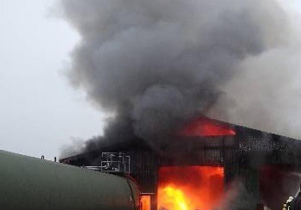 Großbrand in landwirtschaftlicher Lagerhalle bei Breddorf und Hanstedt
