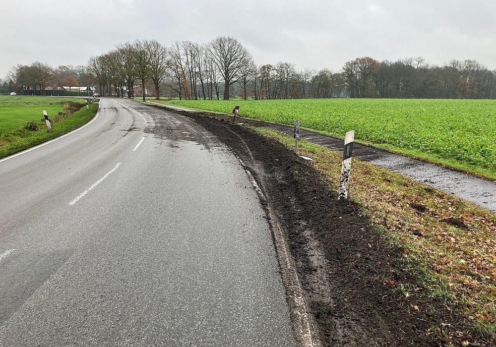 Bakum. In Bakum im Landkreis Vechta hat ein Fahrer nach einem Unfall die Flucht ergriffen. Nach Angaben der Polizei Cloppenburg/Vechta kam ein unbekannter Lkw-Fahrer am Donnerstag gegen 11:15 Uhr in einer Kurve der Essener Straße von der Fahrbahn ab. Dabei durchwühlte das Fahrzeug den Seitenstreifen und beschädigte mehrere Verkehrszeichen.
