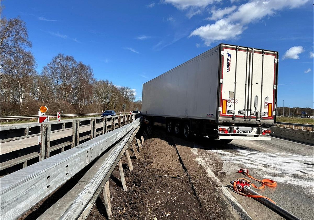 Ein schwerer Lkw-Unfall auf der Autobahn 1 in Richtung Hamburg hat am Samstag zu einem erheblichen Diesel-Austritt geführt.