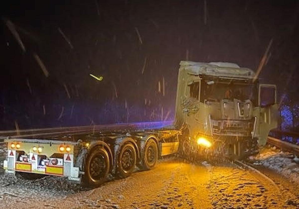 Eine LKW-Fahrerin war gegen 04:30 Uhr mit ihrem Fahrzeug ins Schlingern geraten und anschließend gegen eine Leitplanke geprallt. Durch den Aufprall drehte sich die Zugmaschine und verkeilte sich am Auflieger. Die Fahrerin erlitt leichte Verletzungen und wurde zur Behandlung in ein Krankenhaus gebracht.
