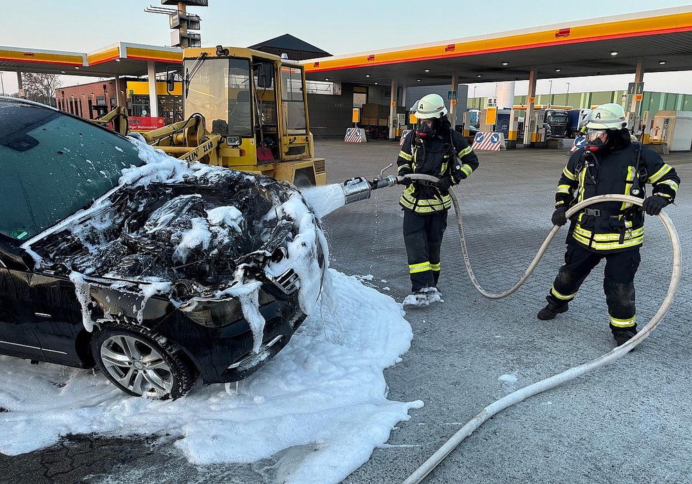 Sittensen. Ein Fahrzeug ist am Donnerstagmorgen auf einem Autohof an der Hansestraße bei Sittensen in Brand geraten. Der Fahrer eines Mercedes-Benz Kombis hatte zuvor auf der Autobahn Probleme bemerkt und war auf den Parkplatz des Autohofs ausgewichen, wo das Auto schließlich Feuer fing, wie die Feuerwehr der Samtgemeinde Sittensen mitteilte. Der Fahrer hatte zunächst selbst mit Feuerlöschern versucht, den Brand zu bekämpfen, war jedoch erfolglos.