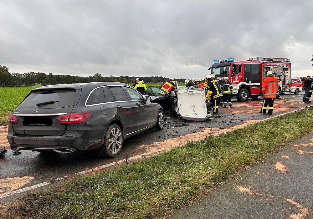 Die Landesstraße war während der Rettungsarbeiten voll gesperrt, die Polizei ermittelt zur Unfallursache.