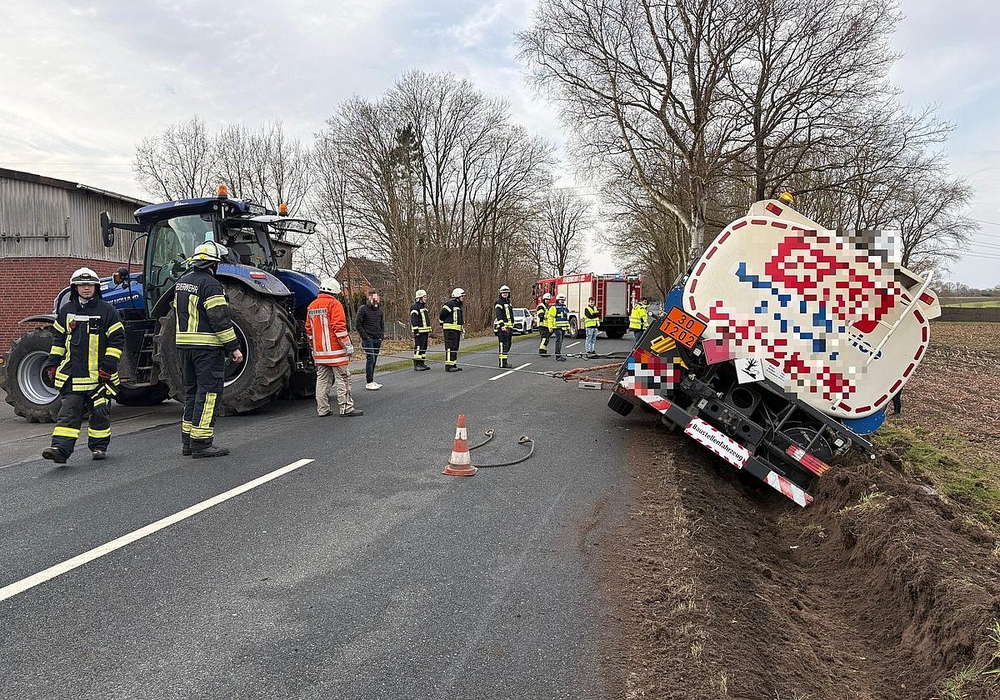 Tankwagen rutscht in Graben bei Mulsum – Straße bis Nachmittag gesperrt