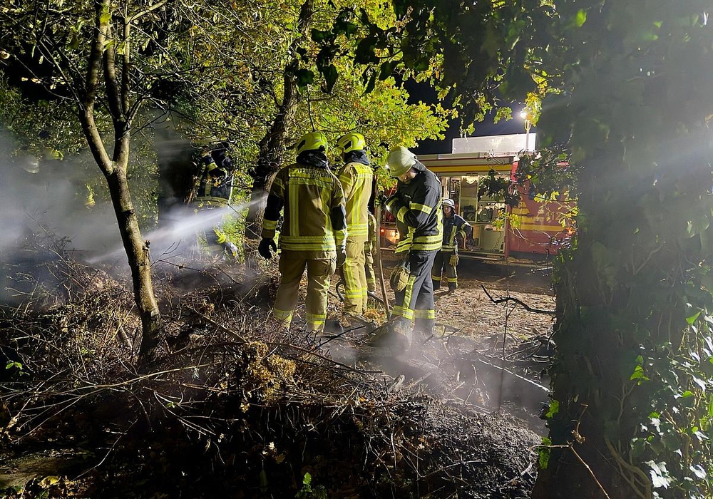 Die 11-Jährige informierte sofort ihre Eltern, die den Notruf absetzten. Beim Eintreffen der Feuerwehr hatte sich das Feuer bereits auf eine Länge von rund 20 Metern ausgebreitet. Da sich der Brand in unmittelbarer Nähe eines Holzschuppens und unter Bäumen befand, bestand die Gefahr einer weiteren Ausbreitung.