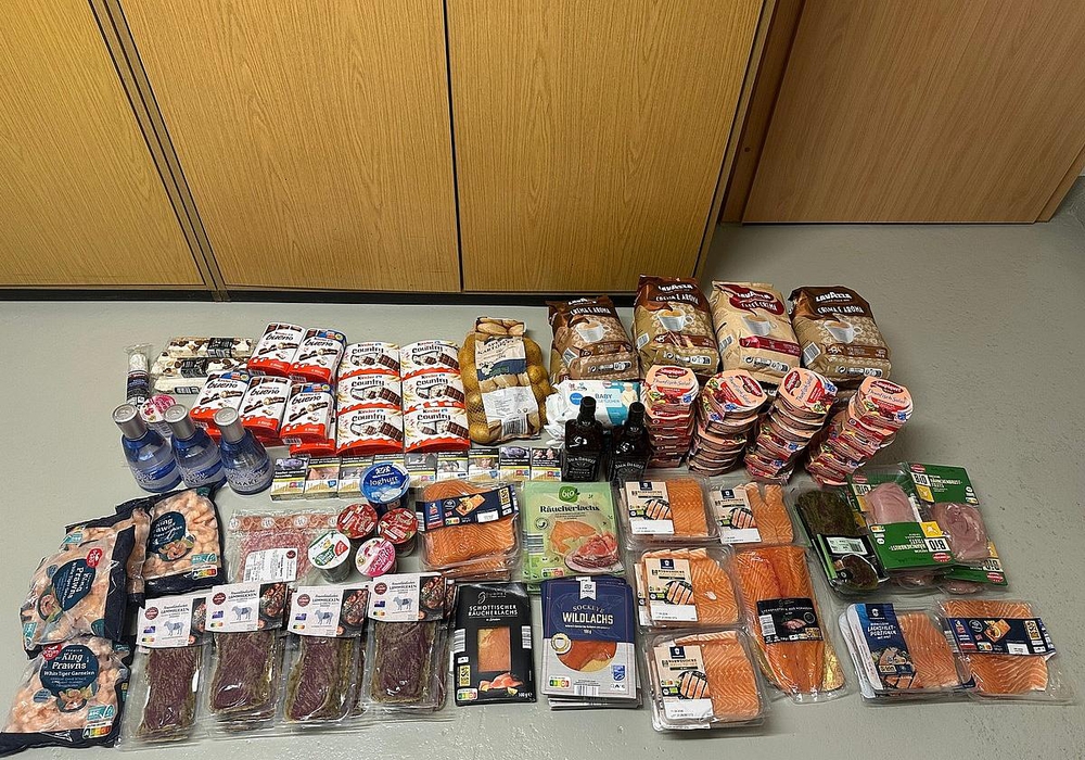 Bei der Überprüfung des Fahrzeugs am Samstag fanden die Einsatzkräfte im Kofferraum diverse Konsum- und Lebensmittel im Gesamtwert von etwa 1.200 Euro.