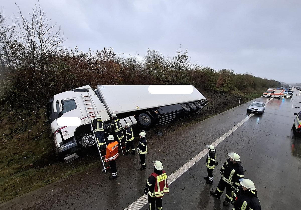 Eine Gefährdung durch das Fahrzeug bestand nicht. Der umgestürzte Lkw wurde auf auslaufende Betriebsstoffe kontrolliert, ohne dass ein Befund festgestellt wurde.