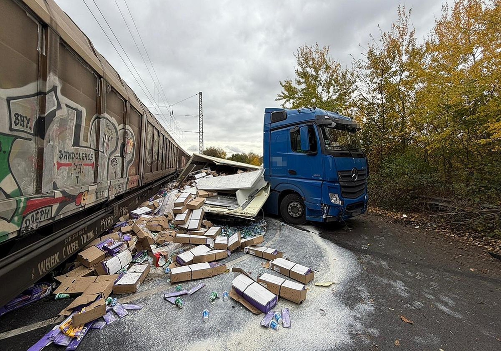 Nach ersten Ermittlungen hatte der 42-jährige Lkw-Fahrer ein Durchfahrtsverbot missachtet. Sein mit Milch- und Käseprodukten beladener Sattelzug blieb auf den Gleisen stehen, kurz bevor ein Güterzug mit etwa 90 km/h herannahte.