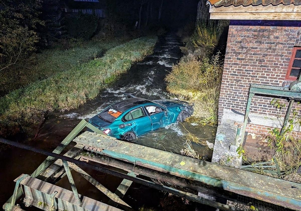 Der Wagen durchbrach die Brückengeländer und stürzte mehrere Meter tief in den Fluss. Die beiden 24-jährigen Insassen konnten sich selbst befreien und wurden von der Feuerwehr gerettet. Die Bundesstraße war vier Stunden gesperrt, der Schaden beträgt etwa 60.000 Euro.