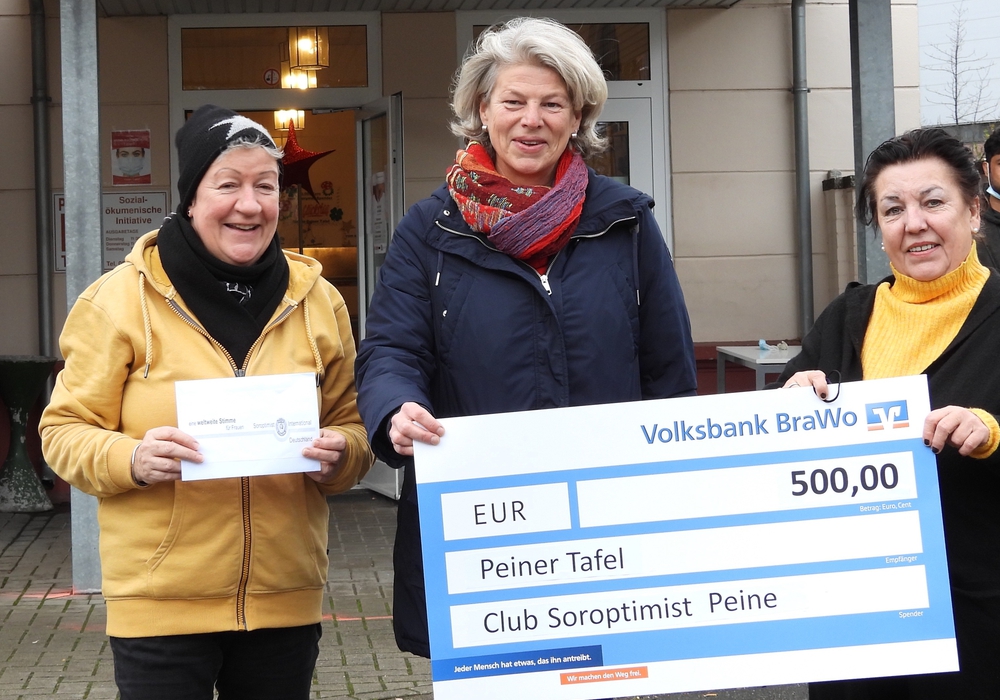 Peine. Die Warteschlangen sind derzeit nicht nur vor den Testzentren lang, auch die Peiner Tafel spürt einen deutlichen Zuwachs an Kunden, der leider einhergeht mit zurückgehenden Lebensmittelspenden aus den Supermärkten. Der Club Soroptimist spendete kürzlich 500 Euro an die Peiner Tafel. Genau zur rechten Zeit, wie der Evangelisch-lutherische Kirchenkreis Peine in einer Pressemitteilung berichtet.