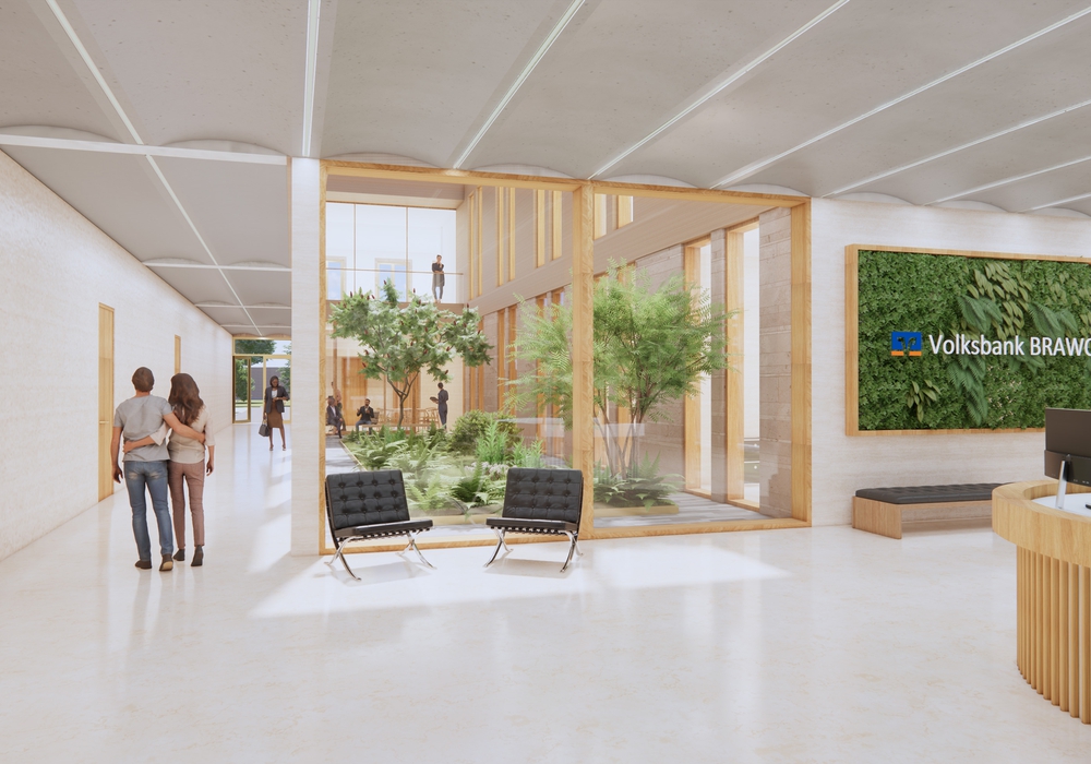 Die Fremdnutzung oder Untermietungen des Gebäudes werden wegfallen und die Nutzung ausschließlich bei der Volksbank BRAWO liegen. Neben einem Servicebereich, einer Mietfachanlage und natürlich belichteten, diskreten Büros für die Kundenberatung, wird es einen Innenhof im Erdgeschoss sowie einen Veranstaltungsbereich im Dachgeschoss mit einer Dachterrasse geben. Der Kundenparkplatz wird ausgebaut und der Zugang in die Volksbank über den Windmühlenwall möglich. Im Sinne der Nachhaltigkeit werden natürliche und wiederverwendbare Materialien verwendet und damit ein niedriger CO2-Fußabdruck entstehen.