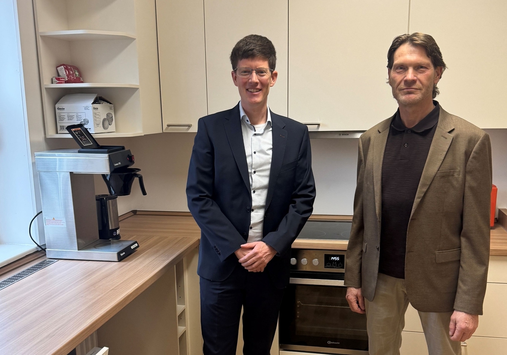 Am 12. Februar nahmen Bürgermeister Tobias Grünert und Wahles Ortsbürgermeister Jörg Hollstamm die neue Küche sowie den anteilig erneuerten Fußbodenbelag im Gemeinschaftsraum gemeinsam in Augenschein.