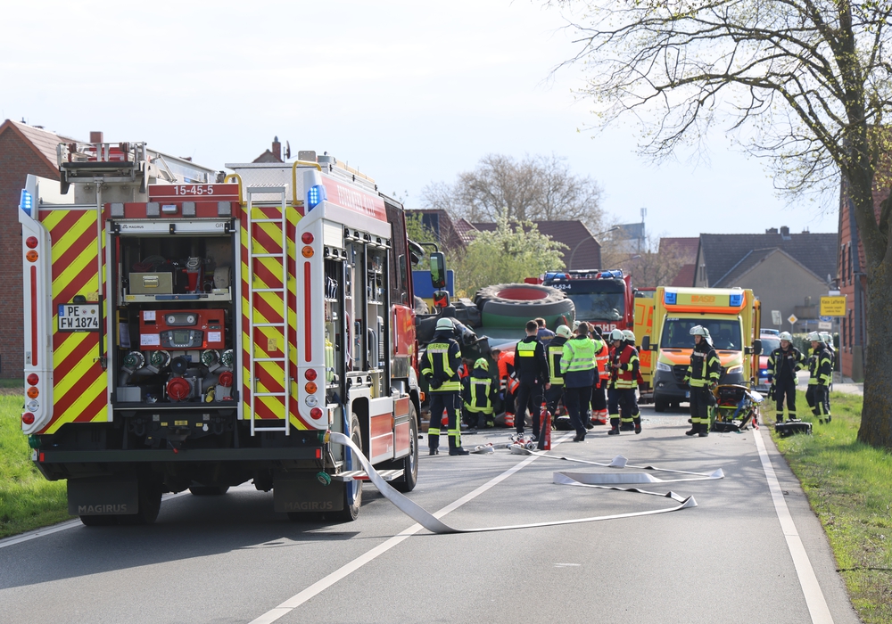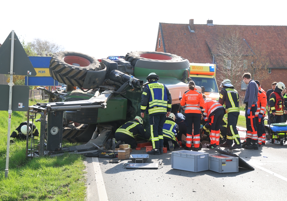 Gegen 9.30 Uhr wurden die Einsatzkräfte alarmiert. Ein Streifenpolizist aus Vechelde erklärte vor Ort gegenüber regionalHeute.de, dass "ein Trecker, der von Klein Lafferde nach Groß Lafferde fahren wollte, umgekippt war, wobei der Fahrzeugführer mit Armen und Beinen unter dem Führerhaus eingeklemmt war." Die Einsatzkräfte – Feuerwehr, Polizei und Notarzt sind vor Ort – versuchten mit hydraulischem Gerät, den Fahrer zu befreien – eine große Herausforderung. Nach etwa einer halben Stunde gelang es, den Traktor und die Kabine anzuheben und den Fahrer zu befreien. Der wurde mit dem Rettungswagen zum Krankenhaus gebracht.
