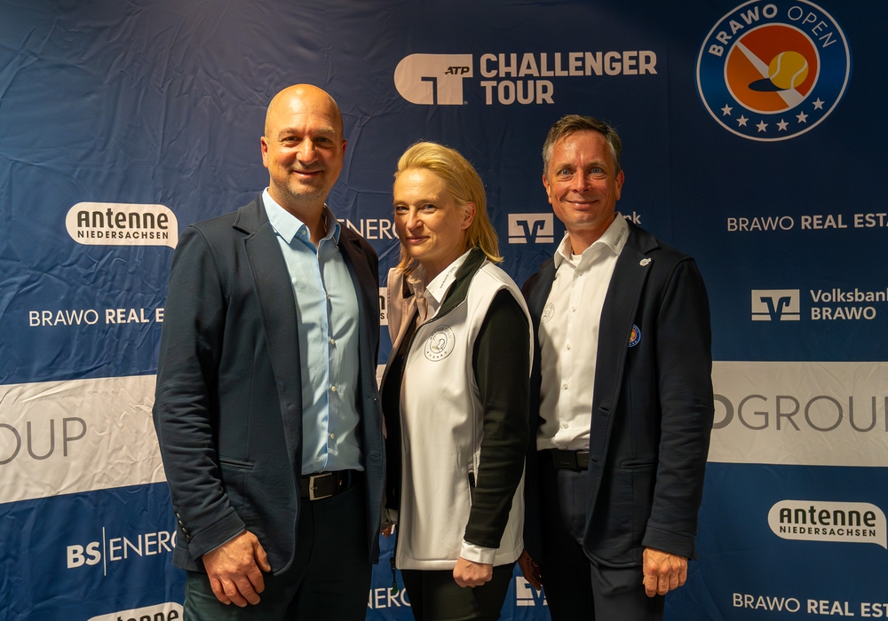 Volker Jäcke (Turnierdirektor BRAWO OPEN), Sabine Perricone (Geschäftsführerin Brunswiek Marketing GmbH) und Markus Beese (Geschäftsführer Brunswiek Marketing GmbH), die das Rahmenprogramm der BRAWO OPEN 2026 vorstellten (v. li.). Foto: Annika Abeler