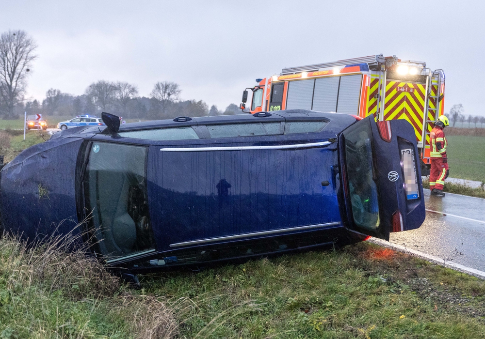 Das Fahrzeug fuhr gegen 15:49 Uhr aus Richtung Lesse nach Fredenberg und kam aus noch nicht geklärter Ursache von der Fahrbahn ab. der Wagen landete auf der Seite liegend rechts im Graben.