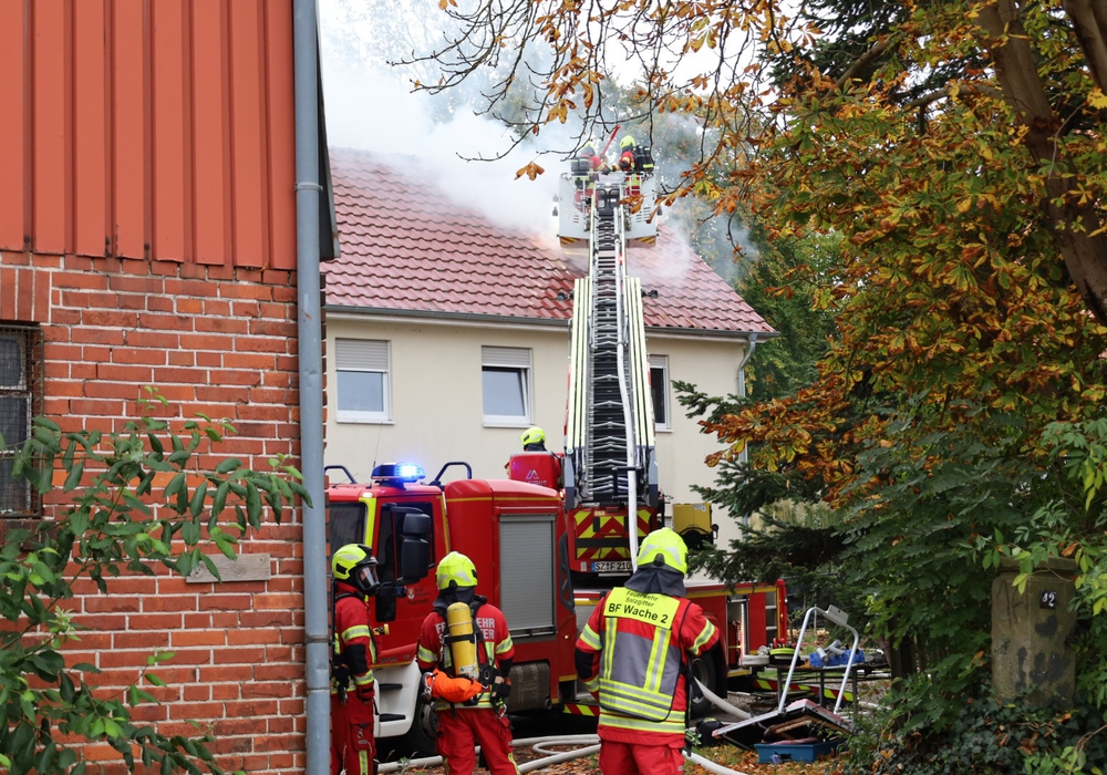 Gegen 14:33 Uhr waren die Rettungskräfte zu einem gemeldeten Dachstuhlbrand mit Menschenleben in Gefahr alarmiert worden. Wie Fabian Abt, Führungsdienst der Berufsfeuerwehr Salzgitter auf Nachfrage erklärt, sei bereits auf der Anfahrt eine massive Rauchentwicklung zu sehen gewesen. Anfangs sei allerdings nicht ganz klar gewesen, wo genau sich der Einsatzort befindet, da die alarmierenden Anrufer aufgrund der Rauchentwicklung unterschiedliche Angaben dazu gemacht hätten. Vier Einsatztrupps bekämpften unter Einsatz von Drehleitern und schwerem Atemschutz das Feuer und trugen dazu auch Teile des Daches ab.