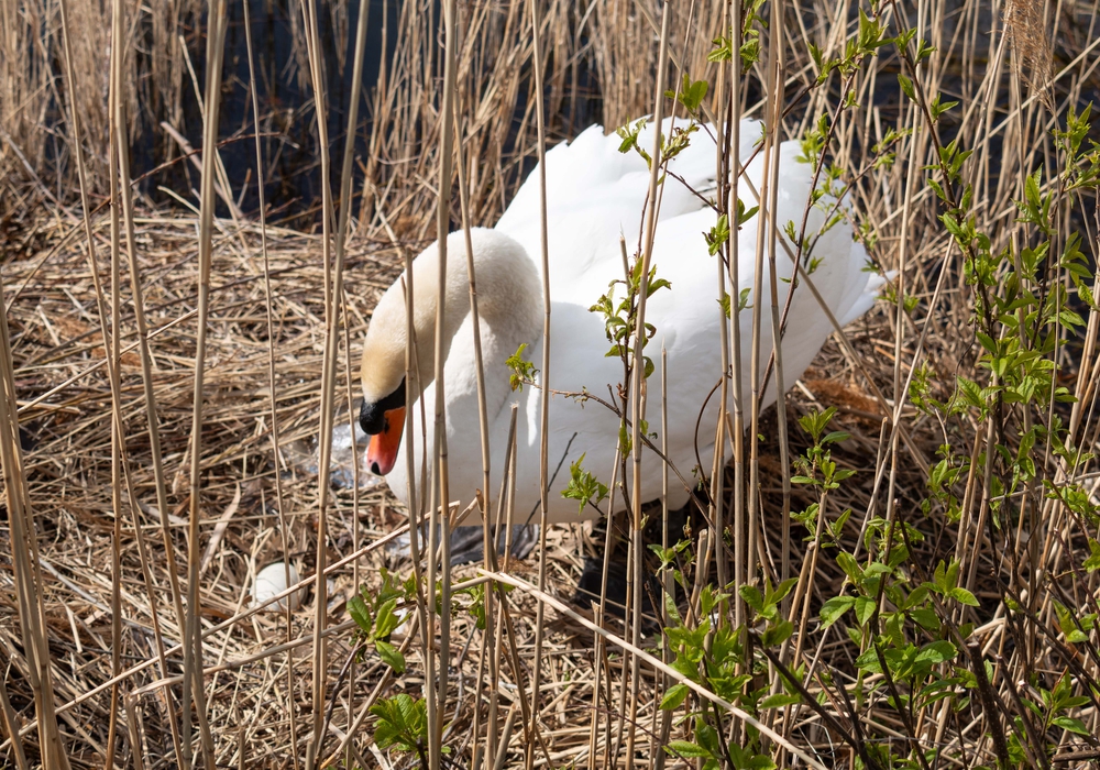 Gut geschützt im Uferbereich sitzt das Tier auf seinem Nest und widmet sich ganz der Aufzucht seines Nachwuchses. Was für viele Spaziergänger ein schöner und berührender Anblick ist, bedeutet für den Schwan jedoch eine sensible Phase, in der er auf Ruhe und Abstand angewiesen ist. Schon kleine Störungen können Stress auslösen und den Bruterfolg gefährden.