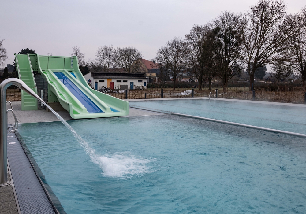 Bis Ende März ist das Ganzjahresbecken freitags bis sonntags geöffnet. Ab April steht es dann dienstags bis sonntags zur Verfügung und ergänzt das bestehende Badeangebot um zusätzliche Wasserflächen mit zirka 28 Grad Celsius Wassertemperatur. Auf rund 360 Quadratmetern laden vier 25-Meter-Schwimmbahnen zum sportlichen Schwimmen ein. Für Spiel und Entspannung sorgt der Erlebnisbereich mit Sprudelsitzen, Nackenschwallern und Bodenbrodlern. Ein besonderes Highlight ist die Rutsche „TrioSlide“, die kleine und große Wasserratten gleichermaßen begeistern soll.