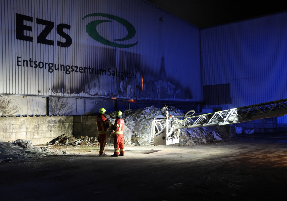 Salzgitter. In der Nacht auf den heutigen Donnerstag kam es im Entsorgungszentrum am Diebesstieg zu einem Feuer. Eine große Menge Müll brannte in einer der Hallen. Die Feuerwehr ist mit zahlreichen Kräften vor Ort.
