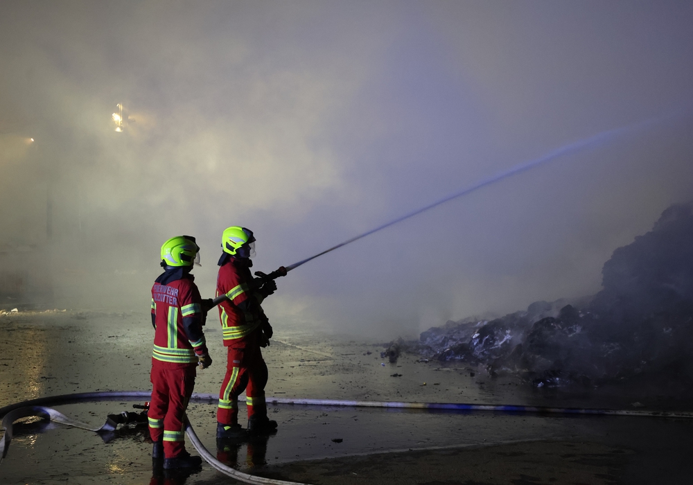 Sofort begannen die Einsatzkräfte mit den Löscharbeiten und bauten eine Riegelstellung zu den übrigen Hallen auf, um ein Übergreifen der Flammen zu verhindern. In der betroffenen Halle brannte eine große Menge Müll, die für die Löscharbeiten auseinandergezogen werden musste. Die große Herausforderung bestand laut Preuß darin, dass sich der Brand innerhalb einer Halle befand und nicht auf einer Freifläche.