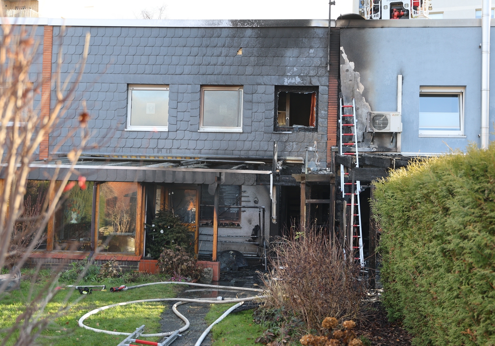 Wie Einsatzleiter Lukas Harder von der Berufsfeuerwehr Salzgitter berichtet, wurden die Kräfte kurz nach 9 Uhr alarmiert. Schon auf der Anfahrt war dichter Rauch sichtbar. Beim Eintreffen der Feuerwehr standen Teile des Anbaus in Brand, sodass sofort mit der Erkundung und Brandbekämpfung begonnen wurde. Zunächst überprüften die Einsatzkräfte, ob sich Personen im Gebäude befanden – dies war nicht der Fall. Parallel zu den Löscharbeiten wurden die angrenzenden Reihenhäuser mithilfe einer Wärmebildkamera kontrolliert, um mögliche weitere Brandnester auszuschließen.