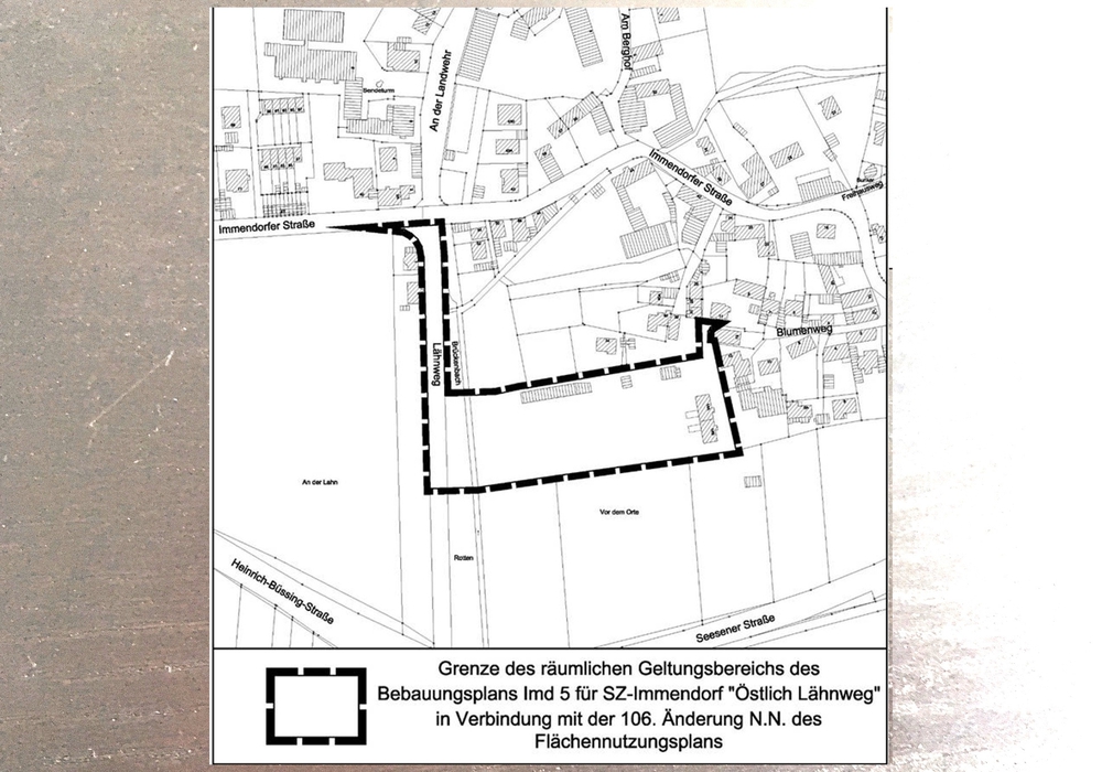Salzgitter. Die allgemeinen Ziele und Zwecke der Planung für den Bebauungsplan „Östlich Lähnweg“ für Salzgitter-Immendorf in Verbindung mit der 106. Änderung des Flächennutzungsplans können eingesehen werden. Veröffentlicht sind die Pläne vom 27. April bis 11. Mai unter folgender Internet-Adresse: www.salzgitter.de/auslegungen. Zusätzlich besteht die Möglichkeit, die Planung während dieses Zeitraums nach vorheriger Terminvereinbarung auch im Rathaus der Stadt Salzgitter, Joachim-Campe-Straße 6-8 in Salzgitter-Lebenstedt, einzusehen. Das berichtet die Stadt in einer Pressemeldung.