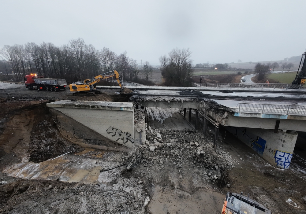 „Nach umfangreichen Vorarbeiten ist ein weiterer Meilenstein erreicht. Für das gesamte Team ist es ein toller Moment, dass nun auch der Neubau in greifbare Nähe rückt“, betont Günter Hartkens, Leiter des zuständigen NLStBV-Geschäftsbereichs in Goslar. Stück für Stück bröckele der Beton und das erste Endfeld des Überbaus sei Geschichte. In den kommenden Wochen werde das alte Bauwerk vollständig verschwunden sein.
