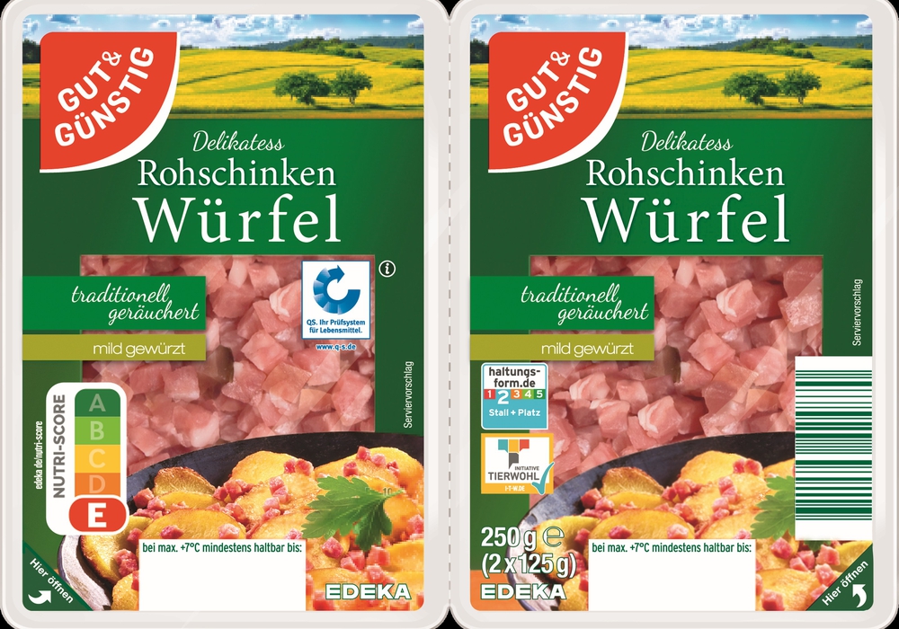 Von dem Rückruf betroffen ist das Produkt Gut und Günstig Delikatess Rohschinkenwürfel in der 2x125 Gramm-Verpackung. Es hat das Mindesthaltbarkeitsdatum 12.12.2025 und die Los-Nummer L4432514, eine weitere Kennzeichnung ist der Zeitstempel von 6:50 bis 9:56 Uhr. Es könne nicht ausgeschlossen werden, dass sich in einzelnen Packungen Kunststofffremdkörper befinden könnten.