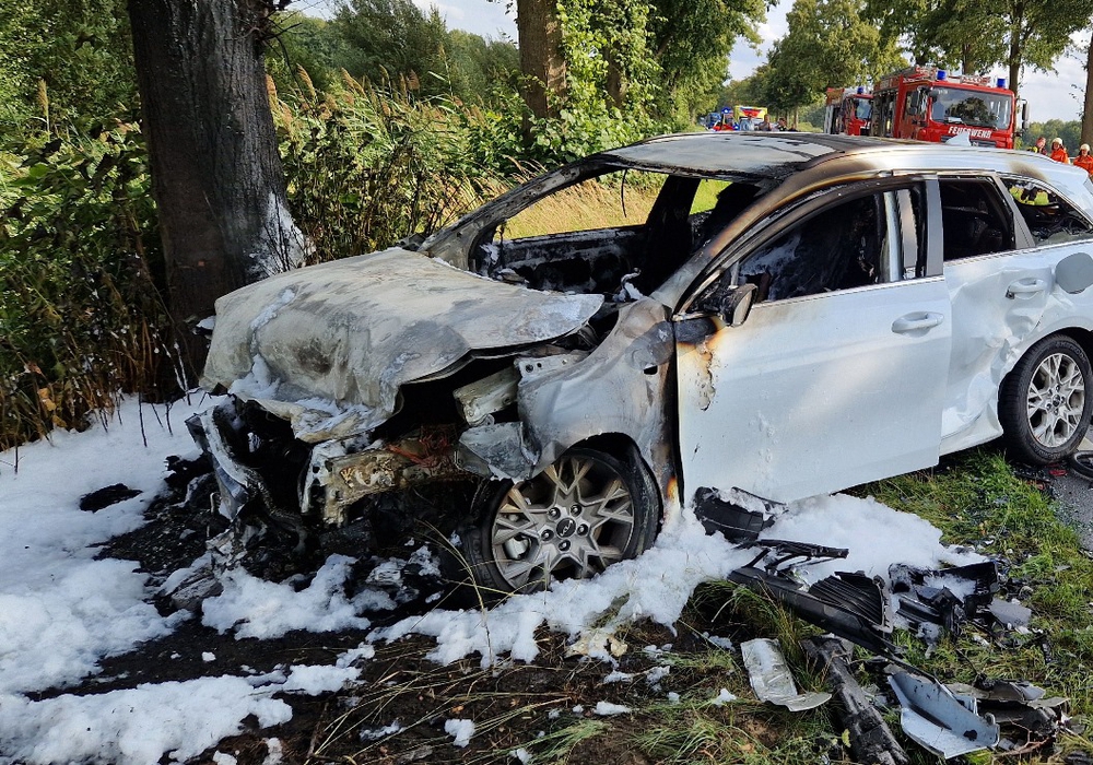 Die eingesetzten Kräfte der Feuerwehren löschten das brennende Auto. Durch den Unfall war auch ein Dieseltank des beteiligten LKWs abgerissen, weshalb der auf die Straße gelaufene Kraftstoff mit Bindemittel abgestreut wurde. Allerdings konnte die Feuerwehr nicht verhindern, dass eine nicht unerhebliche Menge Diesel ins Erdreich sickerte, welches nun ausgebaggert werden muss.