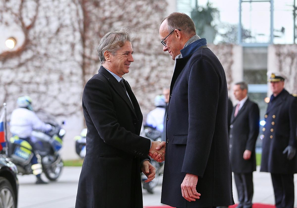 "Zwischen unseren beiden Ländern gibt es heute bereits gute Kooperation, zum Beispiel im Bereich fortschrittlicher Technologien und Weltraumtechnologien, ich bin davon überzeugt, dass wir uns in der Zukunft hierbei noch verbessern werden", sagte Sloweniens Ministerpräsident Robert Golob am Freitag beim Empfang durch Bundeskanzler Friedrich Merz (CDU) im Bundeskanzleramt.