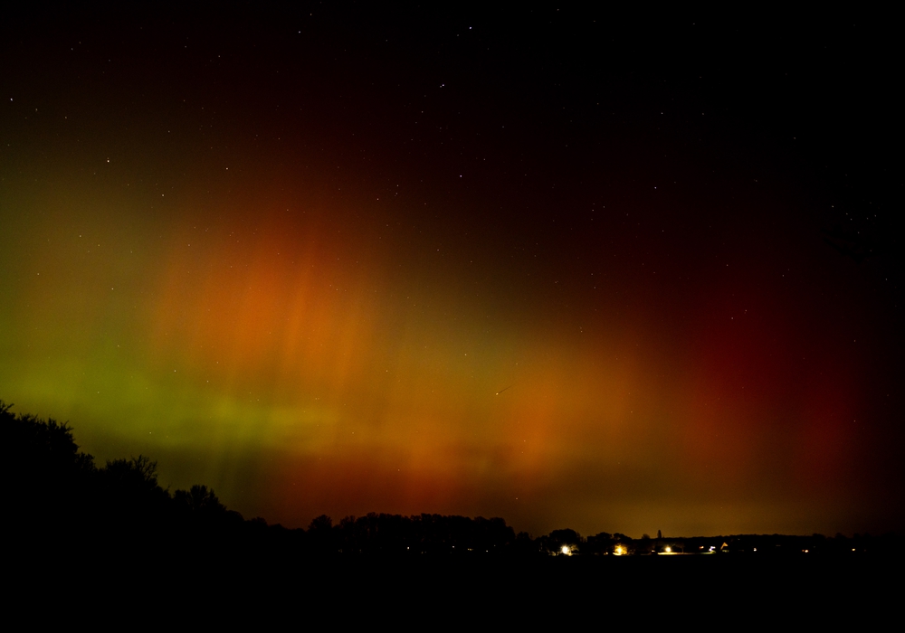 Der Himmel erstrahlte in der vergangenen Nacht in bunten Farben - überwiegend in Rot und Grün. Gegen 21.30 Uhr ging es los: Polarlichter waren aus nördlicher Richtung über vielen Orten der Region besonders gut zu sehen. Das Spektakel dauerte teils bis zum frühen Dienstagmorgen, etwa 4.30 Uhr, an.