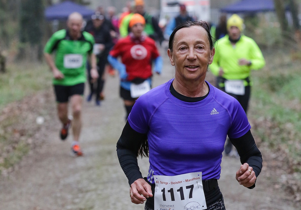 Anke Meinberg (MTV Wolfenbüttel) lief verhalten an. Für die Ultra-Marathonläuferin war es Vorbereitung auf die Deutschen Meisterschaften im 6-Stunden-Lauf im kommenden Monat. „Ich habe nebenbei den herrlichen Duft des noch jungen Bärlauches im kurzen Waldabschnitt regelrecht genossen“, erzählte die 65-jährige Läuferin entspannt. So wurde Meinberg Altersklassensiegerin in in der Zeit von 4:43:58 Stunden. Alle sind gesund und munter „über den Deister gekommen“.