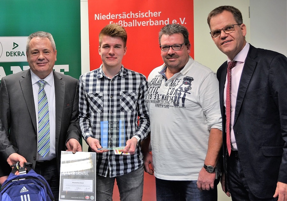 Wolfenbüttel. Sie ist die wichtigste Ehrung, die bundesweit für Fußball-Schiedsrichterinnen und Schiedsrichter vorgenommen wird: Die Aktion mit dem treffenden Titel „Danke Schri“, die gemeinsam vom Deutschen Fußball-Bund (DFB), den Fußball-Landesverbänden und der DEKRA getragen wird. Prämiert werden in ganz Deutschland, und so auch im Niedersächsischen Fußballverband, solche Unparteiischen, die sich durch besonderes Engagement auf und neben dem Spielfeld auszeichnen. Es berichtet Hans-HeinrichBrandes.