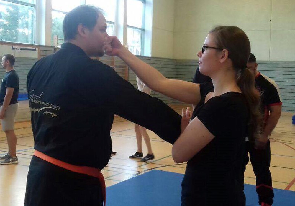 Die Teilnehmer Patrick Noll und Eva Sanning bei Wing Chun Techniken. Foto: privat