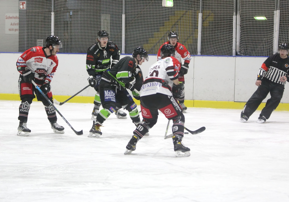 Es war ein Start, wie man ihn sich bei einem Derby wünscht. Beide Mannschaften kamen stark auf das Eis, kämpften um jeden Zentimeter und schenkten sich dabei nichts. Lediglich die Tore fehlten in den ersten 20 Minuten. Während ein Großteil des ersten Abschnitts nahezu ohne Unterbrechungen verlief, hob der Unparteiische gegen Drittelende mehrfach seinen Arm. So gingen die Hausherren schon mit zweifacher Unterzahl in den Mittelabschnitt. Dort setzte man sich anfangs noch gut zur Wehr, doch in Minute 25. schlug es zum ersten Mal im Kasten der Icefighters zum 0:1 ein. Das Spiel blieb noch eine Weile offen. Weitere Strafzeiten gab es nun auf beiden Seiten, doch die Harzer kamen damit besser zurecht, während Salzgitter nicht an die Powerplaystärke der letzten Spiele anknüpfen konnte. Wieder musste sich der heimische Keeper in Unterzahl umdrehen (33.).
