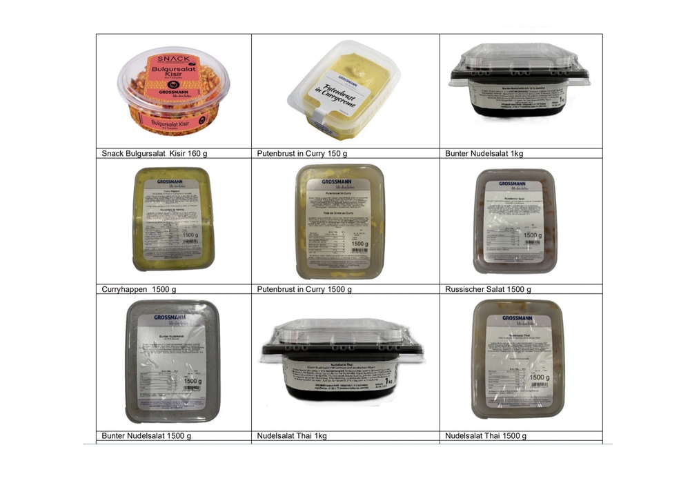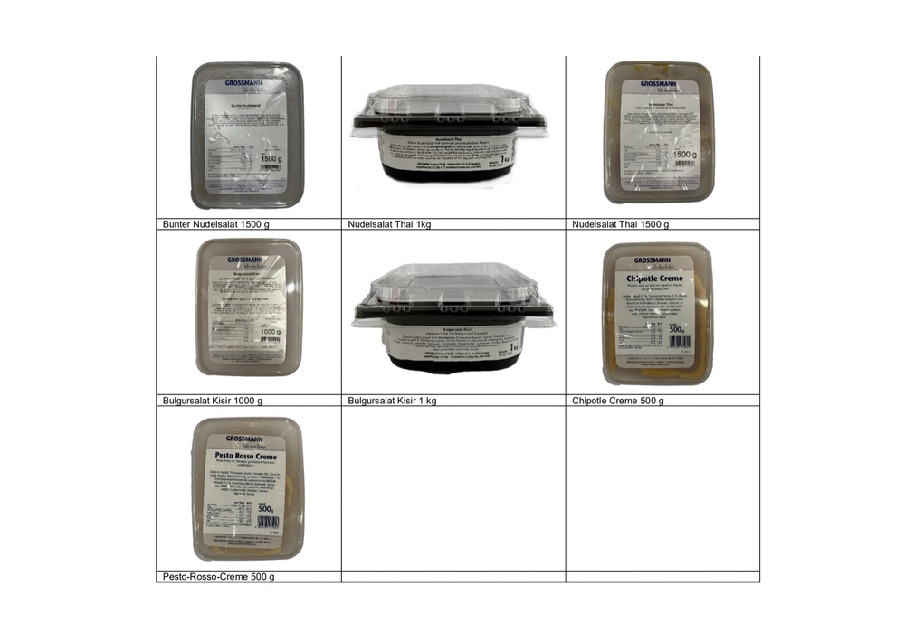 Zu den betroffenen Produkten zählen der Snack Bulgursalat Kisir 160 g (MHD 09.12.2025), Curryhappen 1500 g (MHD 07.12.2025), Russischer Salat 1500 g (MHD 11.12.2025), Putenbrust in Curry 150 g (MHD 12.12.2025) sowie Putenbrust in Curry 1500 g (MHD 08.12.2025). Ebenfalls betroffen sind der Bunte Nudelsalat 1 kg (MHD 09.12.2025) und Bunte Nudelsalat 1500 g (MHD 12.12.2025), der Nudelsalat Thai 1 kg (MHD 06.12.2025) und Nudelsalat Thai 1500 g (MHD 09.12.2025) sowie Bulgursalat Kisir 1 kg mit den MHD 06.12.2025 und 13.12.2025. Zusätzlich ruft das Unternehmen die Chipotle Creme 500 g (MHD 15.12.2025) sowie die Pesto-Rosso-Creme 500 g (MHD 18.12.2025) zurück.