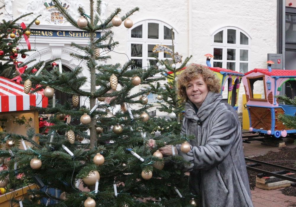 Viele wissen nicht wohin mit ihrem alten Schmuck. Ihn einfach wegzuschmeißen bringen die Meisten nicht über das Herz. Deshalb kann der Schmuck genutzt werden, um die Bäume für Seniorenheime zu schmücken. Die Tannen hierfür spendiert der Tannenbaumverkauf Olaf Werner, der seinen Baumverkauf auf dem MKN Gelände hat. Der Schmuck, die Lichter und die Christbaumständer wurden von den Bürgerinnen und Bürgern der Stadt gestiftet. Als Dank für jeden Spender, der mit Baumschmuck und Zubehör die Aktion unterstützt, gab Weihnachtsmarkthändler Conny Weinrich mit Partnerin Maria Anna Gärtner ein wärmendes Heißgetränk als Dankschön aus.