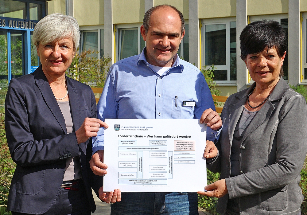 Mit ihren Geschäftsführern Heiko Beddig und Sven Volkers hat die Zukunftsfonds Asse gGmbH inzwischen eine Förderrichtlinie entwickelt, die vom zuständigen 15-köpfigen Kuratorium genehmigt und von der Finanzverwaltung überprüft wurde. Ebenso wurden ein Antragsformular sowie Hinweise zur Antragstellung erarbeitet.