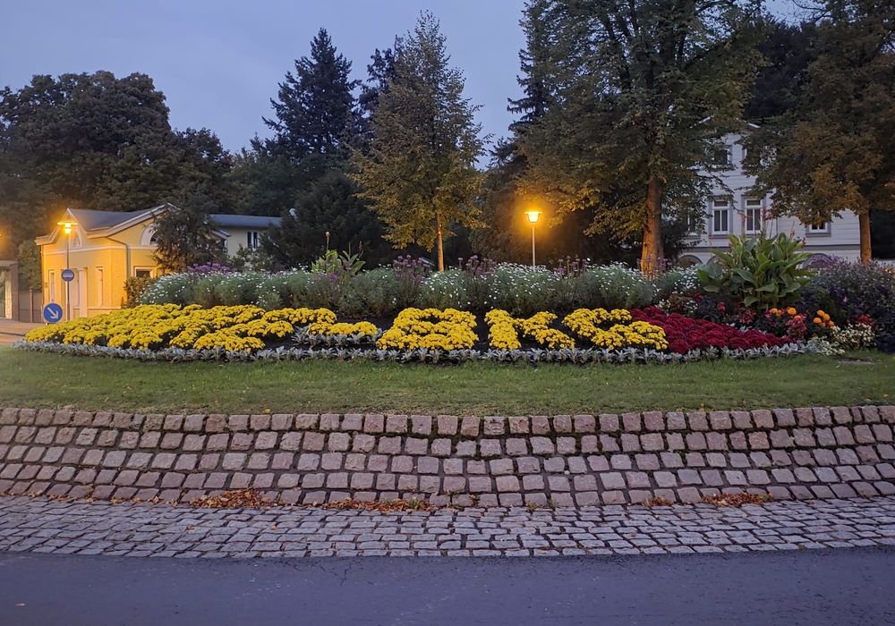 Wolfenbüttel. Die Mitarbeiter des Grünflächenamtes sind am Kreisel Herzogtore wieder zur Tat geschritten und haben das große Blumenbeet herbstlich bepflanzt. Leuchtend gelbe Chrysanthemen schmücken die Anlage – doch in diesem Jahr steckt mehr dahinter als nur jahreszeitliche Deko. Die Blumen zeigen den geheimnisvollen Schriftzug: „WF – 10 Jahre – BKG“.