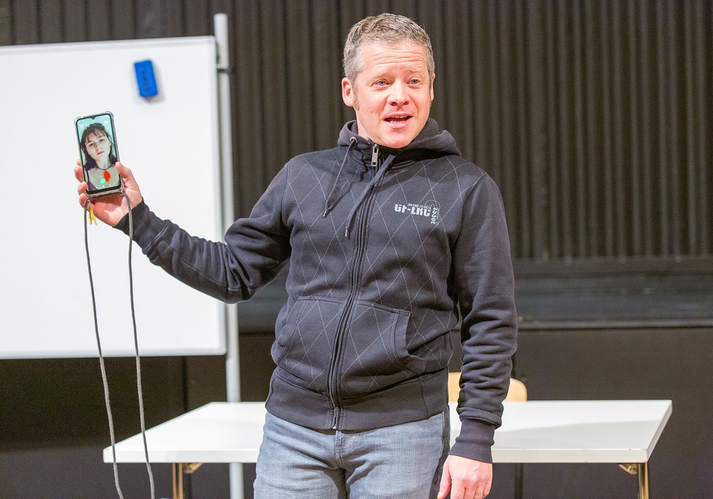 Was tun, wenn man nichts löschen kann, die Dinge so aus dem Ruder laufen, dass sogar die Erwachsenen hilflos zuschauen? Initiiert und organisiert vom Lessingtheater, wird „Out - gefangen im Netz“ in Wolfenbütteler Schulen in den Klassenräumen aufgeführt - es ist ein Ein-Personen-Stück, in dem der Schauspieler Ronald Schober mit sehr intensivem Spiel in insgesamt elf verschiedenen Rollen auftritt.
