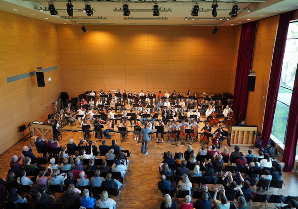 Am Nachmittag trafen die Instrumentalisten der 6. Klassen zur Probe ihrer schulspezifischen sowie eines schulübergreifenden Stücks in die Landesmusikakademie ein. Nach einem Grußwort von Oliver Burkardt, Leitung der Musikschule im Bildungszentrum, präsentierte jedes der drei Gymnasien sein Programm zusammen mit den jeweiligen Ensemble- und Orchesterleitungen. Von Volksmusik über Klassik bis hin zu Filmmusik wurde ein vielfältiges Repertoire geboten. Im Anschluss brachte ein schulübergreifendes Arrangement von Edward Elgars berühmtem „Pomp and Circumstance“ den Orchestersaal zum Klingen.
