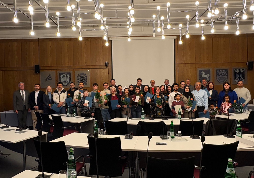 Die Feierstunde hat mittlerweile Tradition, am vergangenen Mittwoch wurde die 41. Einbürgerungsfeier begangen. Auch diesmal war der Sitzungssaal bis auf den letzten Platz besetzt, denn Freunde, Ehepartnerinnen und -partner sowie Verwandte begleiteten die neuen Bürgerinnen und Bürger zu diesem wichtigen Anlass.
