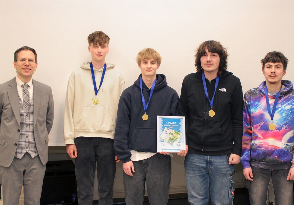 1. Platz: Linus Reinecke, Robin Müller, Nicklas Mirko Schrader, Petrik Stautmeister, Wilhelm Bracke Gesamtschule, Braunschweig