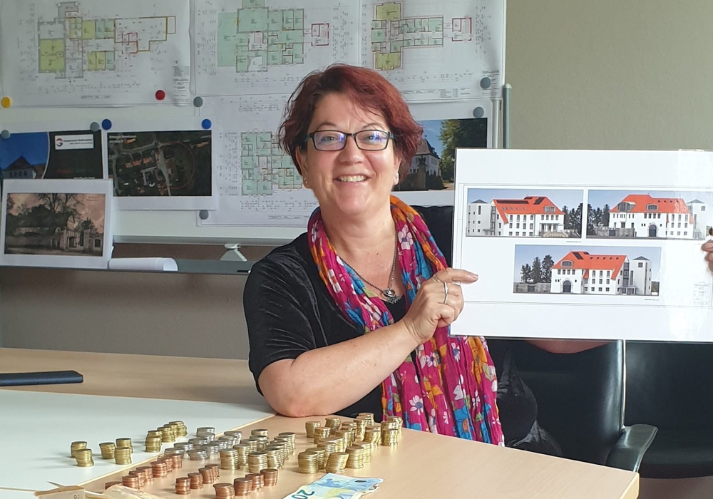 Gleich am nächsten Tag kam Anja Krause mit einem münzenschweren Rucksack zur Geschäftsstelle. Auch sie hatte zu ihrem Geburtstag das Thema HospizZentrum ins Gespräch gebracht – über das sie immer mal wieder in der Zeitung gelesen habet. Ihren Ehrentag feierte sie mit vielen Menschen in einem Kleingartenverein. Das Highlight sei eine amerikanische Versteigerung gewesen, für die sie gemeinsam mit ihrer Schwester viele Monate im Voraus ein buntes Allerlei an Gegenständen zusammengetragen hatte. So kamen zu den Geldgeschenken noch reichlich Münzen hinzu, alles zusammen nahezu 1.000 Euro – die Anja Krause noch aufrundete.