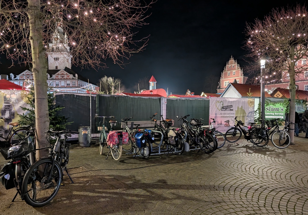Unserer Redaktion war aufgefallen, dass die Fahrradabstellanlage vor dem Haupteingang des Weihnachtsmarktes vor allem abends häufig voll besetzt ist und weitere Fahrräder daneben oder in der Nähe abgestellt werden. Platz für eine weitere Abstellanlage scheint vor Ort vorhanden zu sein.