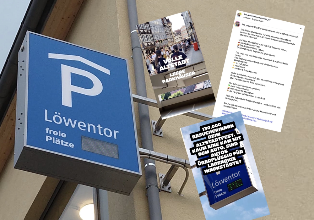 Grünen-Ratsherr Leonhard Pröttel sieht das offenbar etwas anders und hält mit seiner Meinung auch, wie gewohnt, nicht hinterm Berg. Nach dem Fest postete er auf Instagram, dass die Straßen voller Leben gewesen seien, die Parkhäuser dagegen aber leer. "Die Bilanz ist eindeutig: Für lebendige Innenstädte braucht es keine Autos. Es waren ja kaum welche da und die Stadt trotzdem voll", schreibt er. Die Parkhäuser seien leer gewesen. Als Beweis zeigt er Videoaufnahmen leerer Parkflächen im Parkhaus am Löwentor sowie die digitale Anzeige mit 142 freien Stellplätzen. Sein Fazit: "Die Zukunft der Städte ist autofrei – und das fühlt sich richtig gut an." Offenbar eine Momentaufnahme.