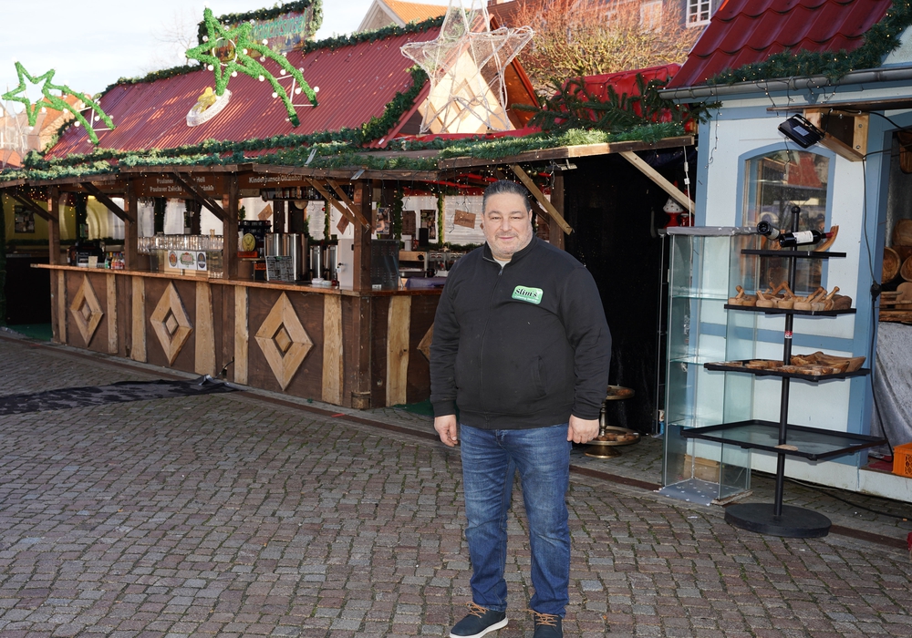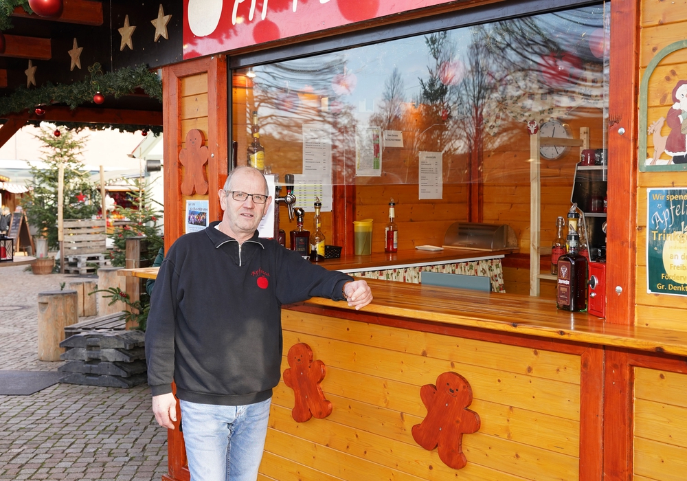 Apfelpunsch: Joachim Grabowsky findet den Weihnachtsmarkt wunderschön, wünscht sich aber gerade am Wochenende längere Öffnungszeiten. Foto: Matthias Kettling