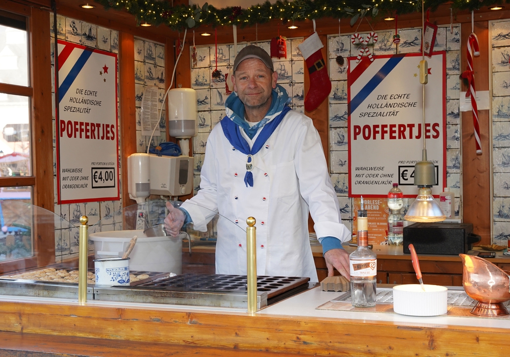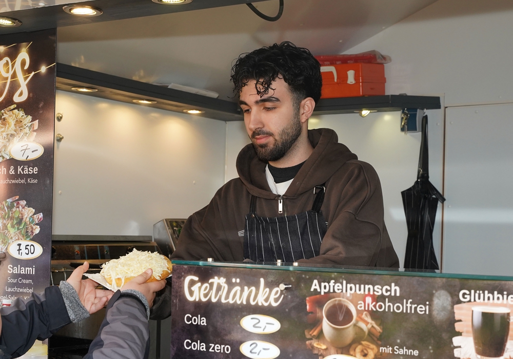 Sysar verkauft hauptsächlich Langos. Ihm gefällt die Stimmung auf dem Weihnachtsmarkt. Foto: Matthias Kettling