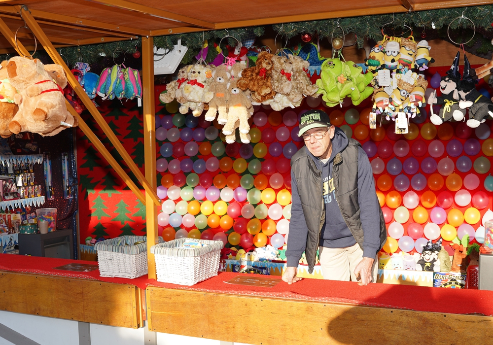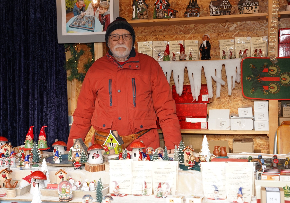 Horst Günzel verkauft seit 25 Jahren Kunstkeramik auf dem Weihnachtsmarkt und fühlt sich auf dem Schlossplatz sehr wohl. Er findet es hier viel schöner als in Braunschweig. Foto: Matthias Kettling
