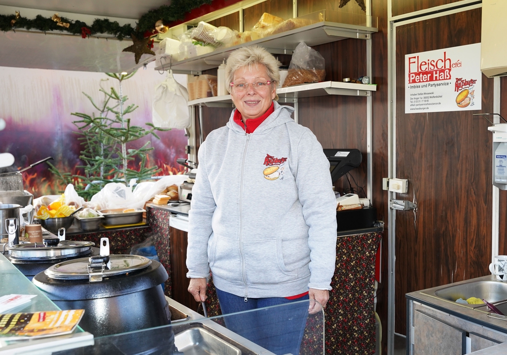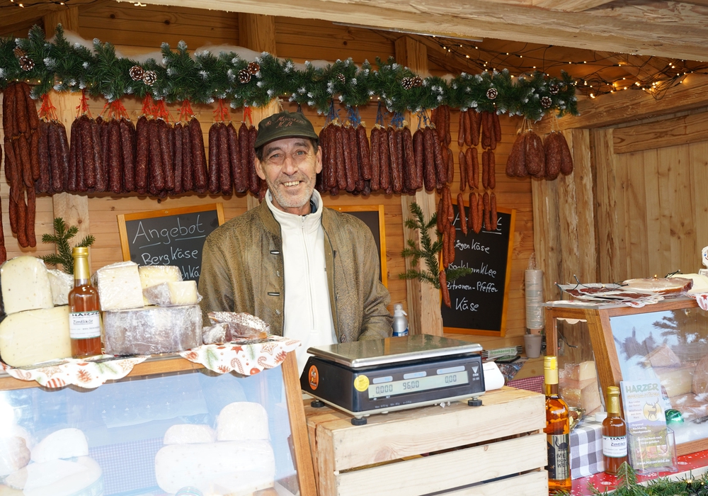 Heinz Almstadt in der kleinen Hütte, die zum Harzer Spezialitäten-Stand gehört: "In Wolfenbüttel bin ich immer zufrieden. Vom Gefühl her ist es sehr schön." Foto: Matthias Kettling