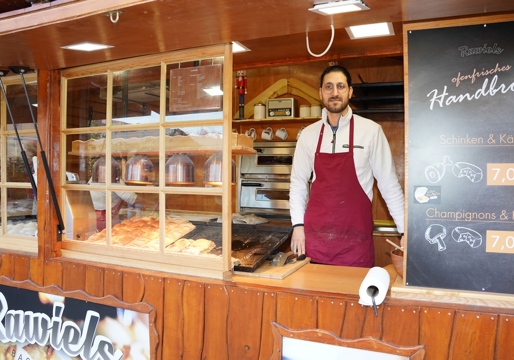 Asadollah Moalletshahri von Rawiels Backstube freut sich, dass gerade am Wochenende besonders viele Besucher hier sind. Foto: Matthias Kettling